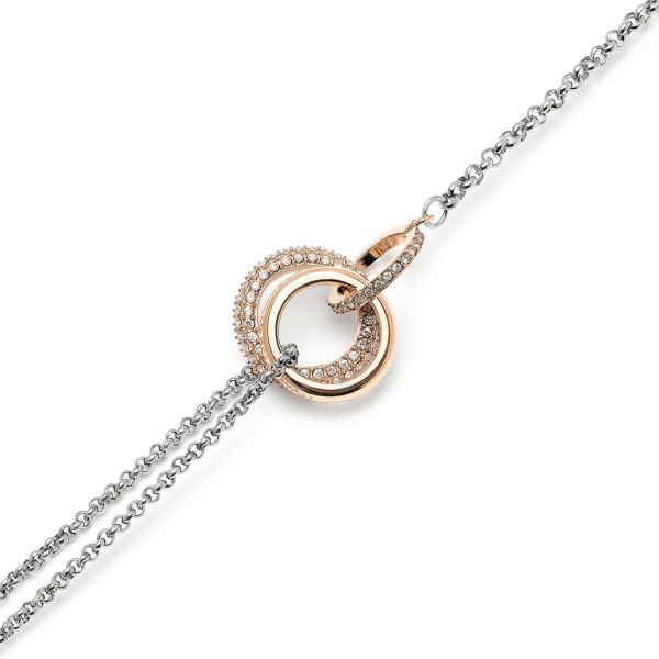 バランス、調和、静寂を象徴する、クラシック・エントワインシリーズのインターリンキング・ブレスレットです。オリビア・バートンのシグネチャーをあしらったローズゴールドプレートのリングと、クリスタルをあしらった2つのサークルが絡み合い、バランス感覚を生み出しています。