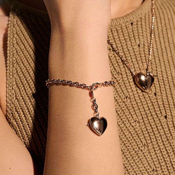 クラシック ノット ハート ブレスレットは、私たちにとって最も大切な人たちに、私たちが気にかけていることを伝えるために作られた、遊び心のある愛情のアミュレットです。ステンレススチール製で、ローズゴールドのコーティングを施したハートのペンダントは、結び目でユニークに仕上げられています。