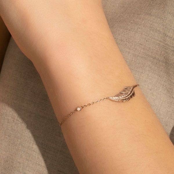自由、知恵、力を象徴するフェザージュエリーは、優雅で女性らしく、動きに満ちています。この繊細なローズゴールドコーティングのフェザーブレスレットは、詳細な彫刻で生き生きとした表現が施され、チェーンには、思いがけない驚きとなる小さなクリスタルが取り付けられています。あなた自身や大切な人への、特別で心に残る贈り物になるでしょう。