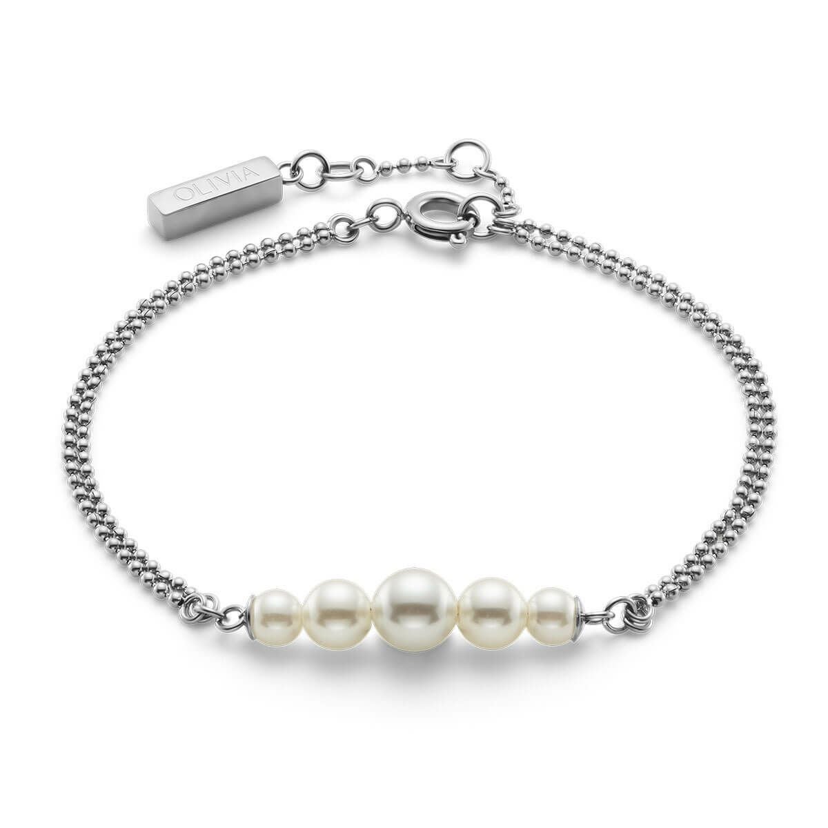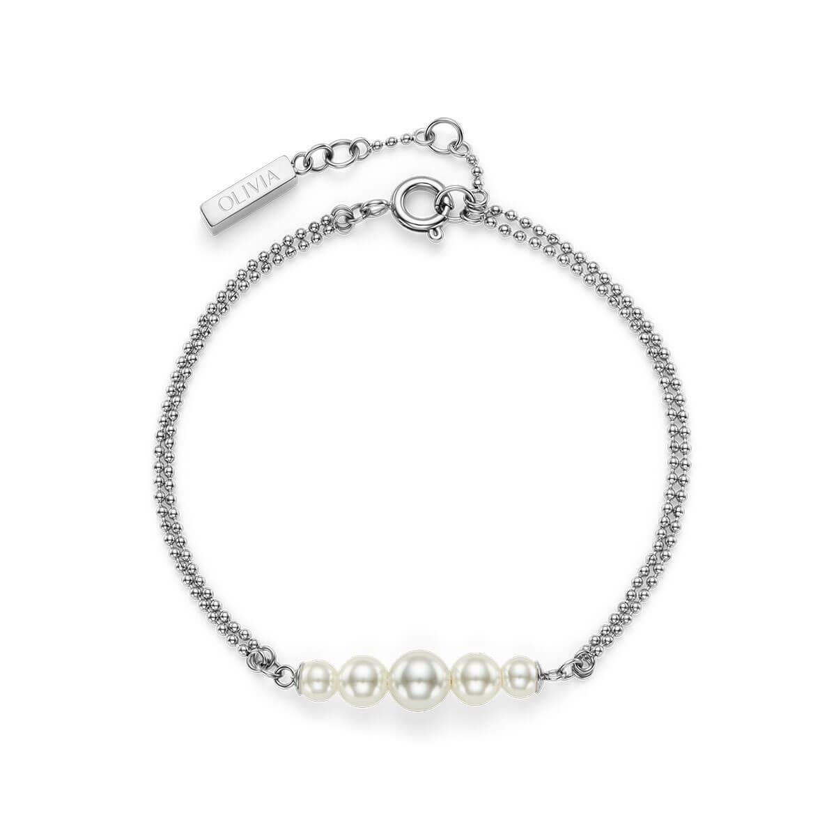 クラシック - パール&ビーズ パール ダブル ロー ボール シルバー ブレスレット