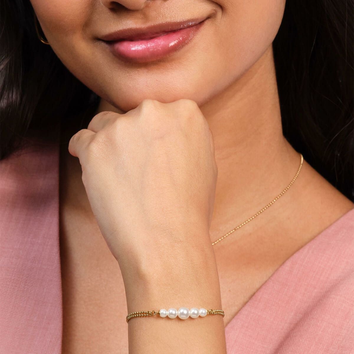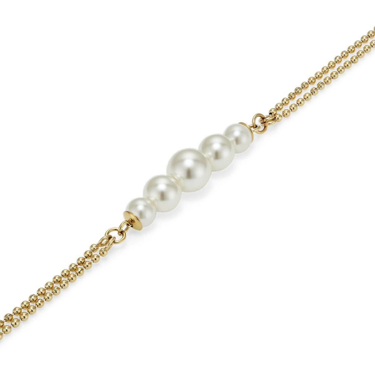 クラシック - パール&ビーズ パール ダブル ロー ボール ゴールド ブレスレット