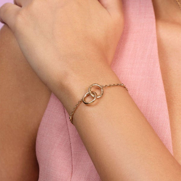 人気のインターロックコレクションから、上品で女性らしいローズゴールドのブレスレットが新登場。重なり合うリングには繊細なカヴィアビーズがあしらわれ、手元に優雅な輝きを添えます。トレンド感のあるビーディングチェーンが、ほどよい華やかさをプラス。大切な人へのギフトや、自分へのご褒美にぴったりのアイテムです。
