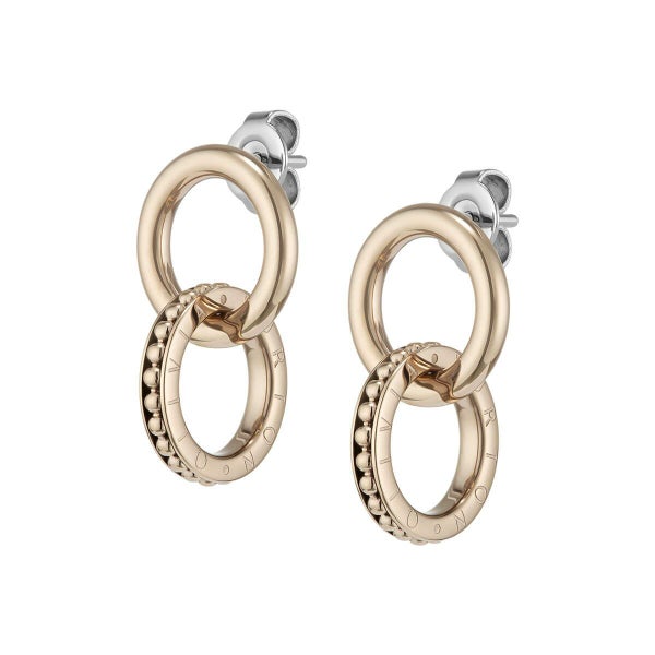 人気のインターロックコレクションから、優美なローズゴールドプレーテッドイヤリングが仲間入り。重なり合うリングに繊細なカヴィアビーズをあしらい、クラシカルでフェミニンな雰囲気をプラス。フープの華やかさとスタッドピアスのデイリーな使いやすさを兼ね備えたデザインは、シーンを問わず活躍します。大切な人へのギフトにも、自分へのご褒美にもぴったりな、とっておきのジュエリーです。