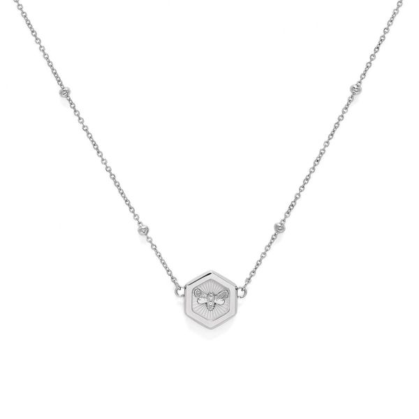 洗練されたモダンな雰囲気が魅力の、ミニマ・ビー&ハニカムネックレス。蜂の巣をインスパイアにした、幾何学的なステンレススチール製のチャームに、小さな蜂が描かれています。トレンド感溢れるビーズディテールのチェーンで仕上げられ、ずっと身につけていたいネックレスです。さらに、同じモチーフのブレスレットと一緒に着用もおすすめです。