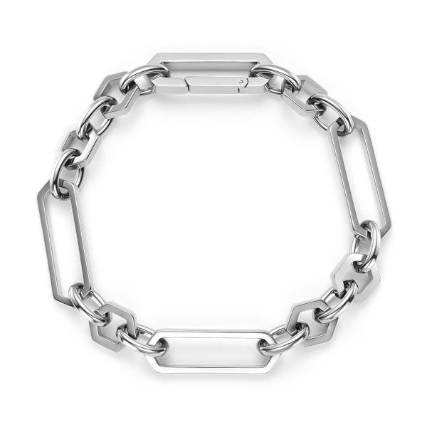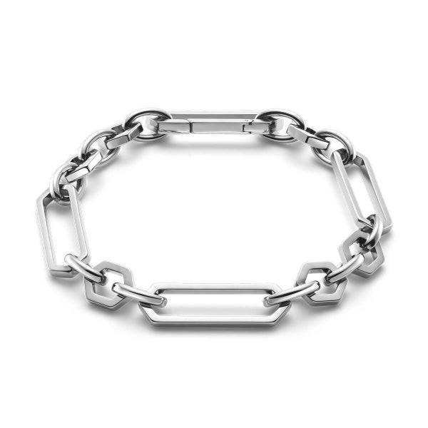 蜂の巣をモチーフにしたリンクデザインが印象的な、シルバートーンのボリュームチェーンブレスレット。