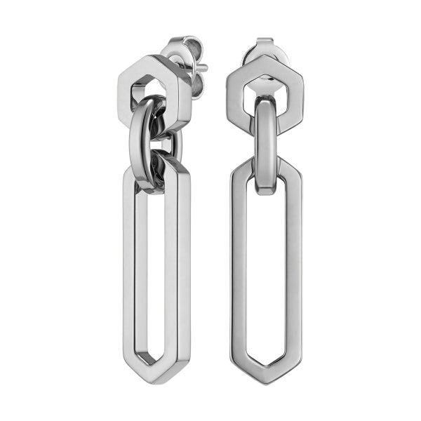 蜂の巣を思わせる六角形のスタッドと、繊細に絡み合うリンクが印象的なドロップピアス。