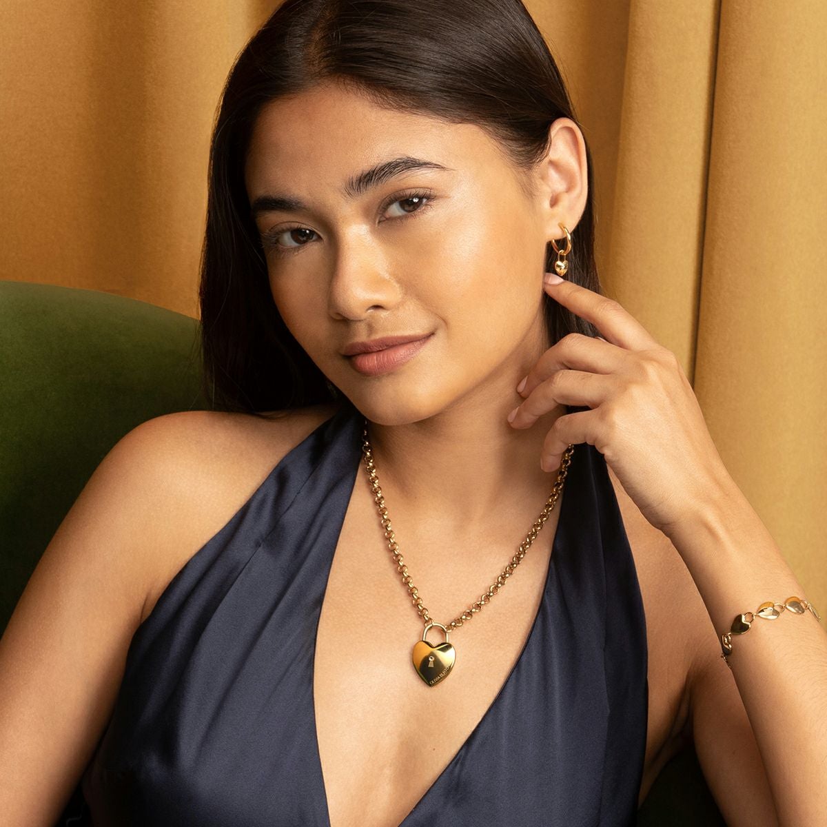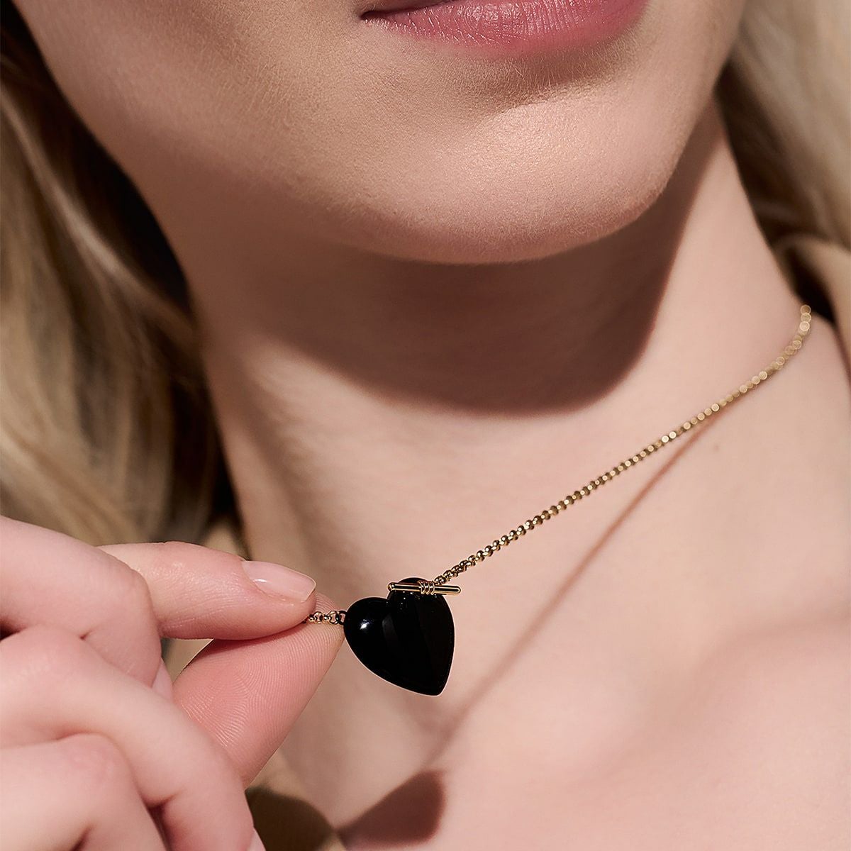 クラシック - ノット ハート ゴールド & ブラック ネックレス