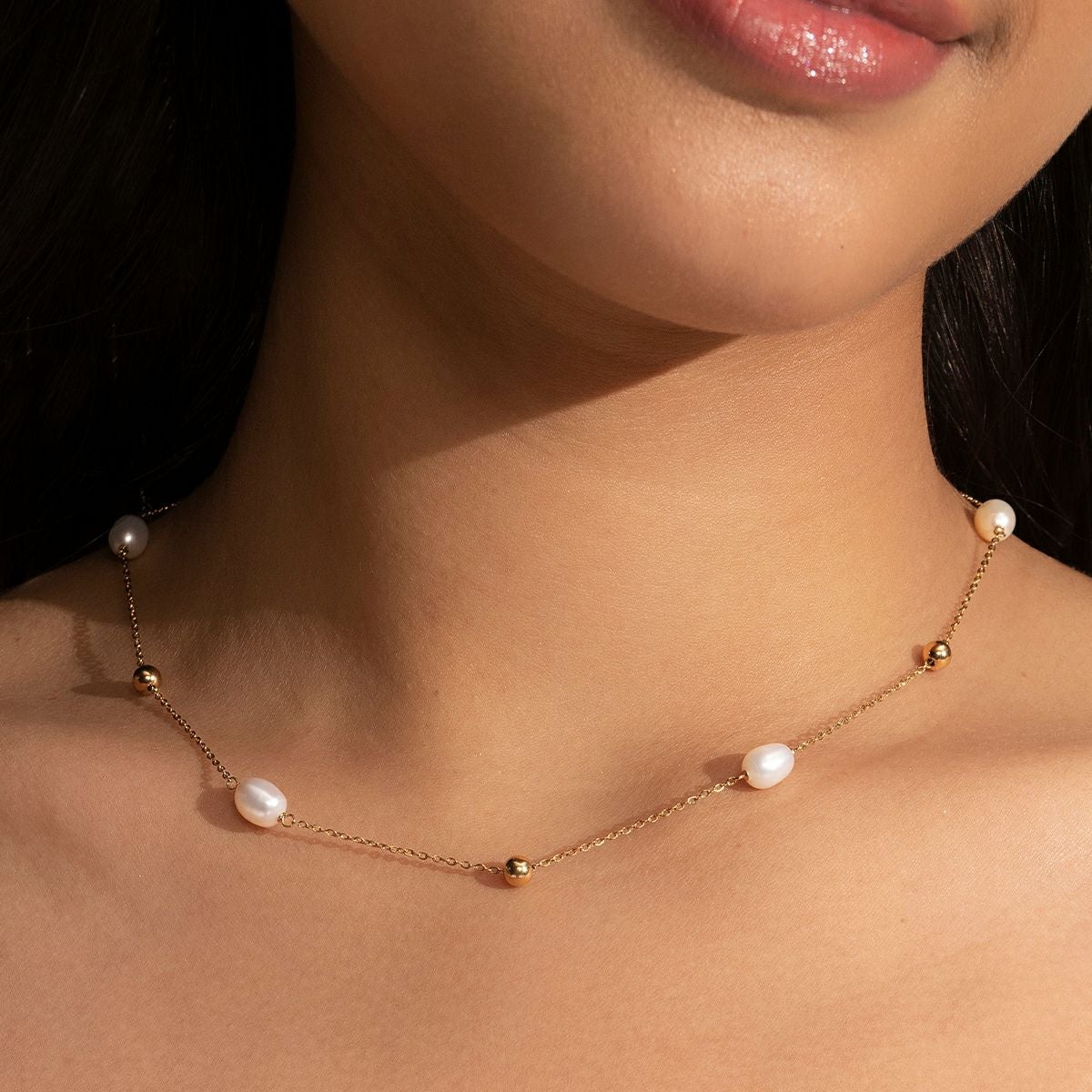 トレンド - バイ ザ シー パール ビーズ ゴールド ネックレス
