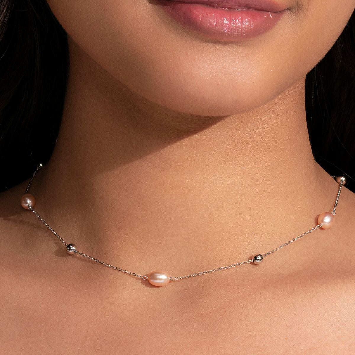 トレンド - バイ ザ シー パール ビーズ シルバー ネックレス