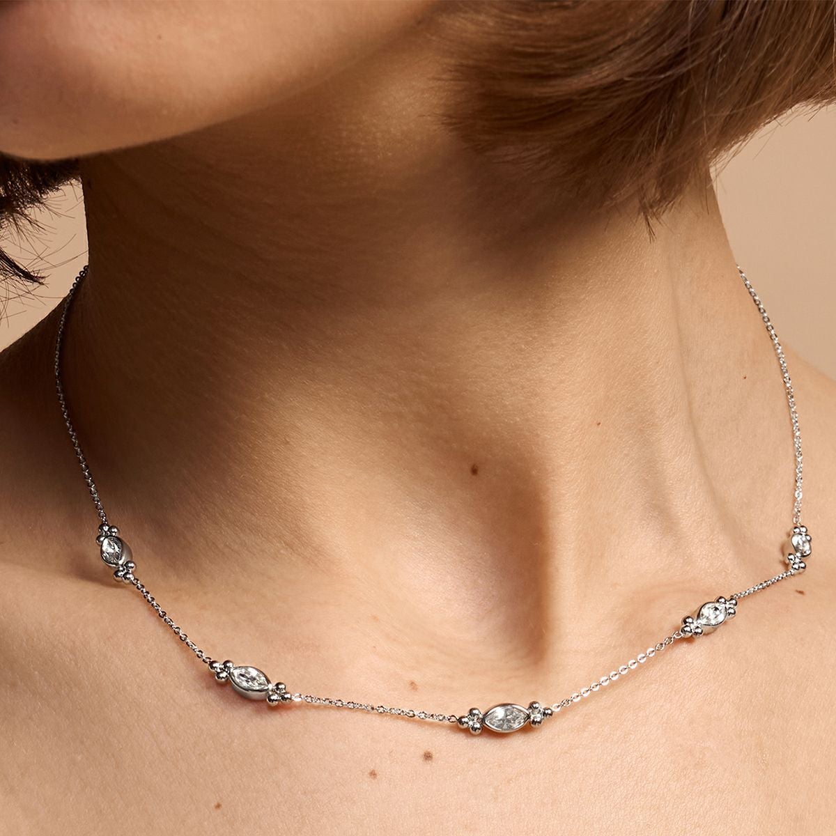 トレンド - エバー スタックト クリスタル シルバー ネックレス