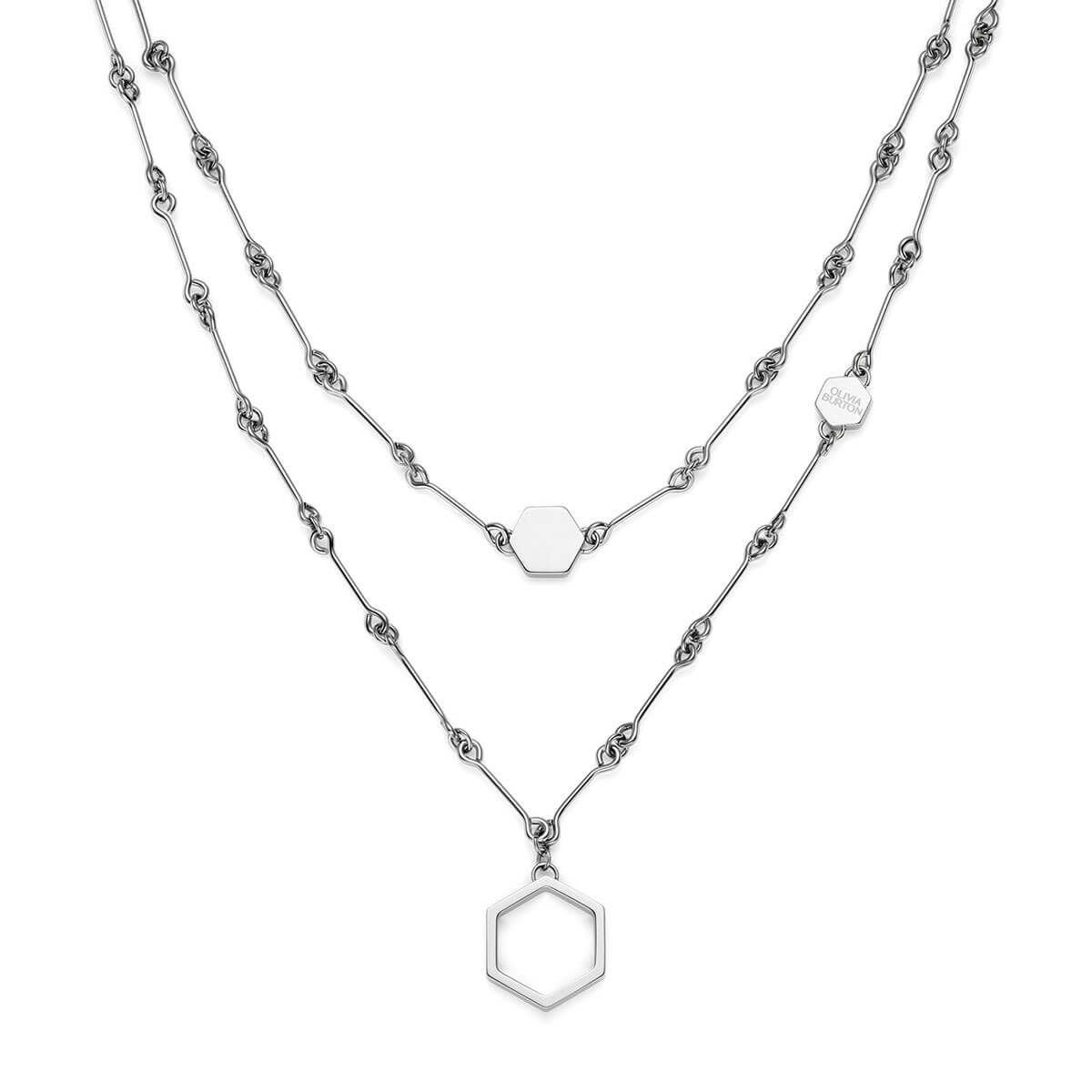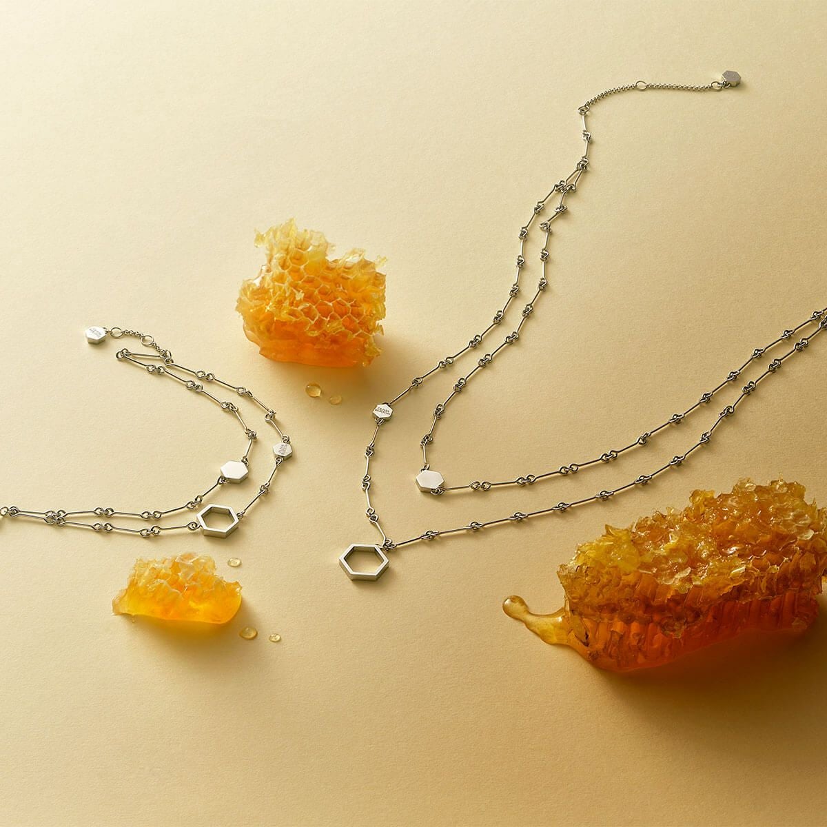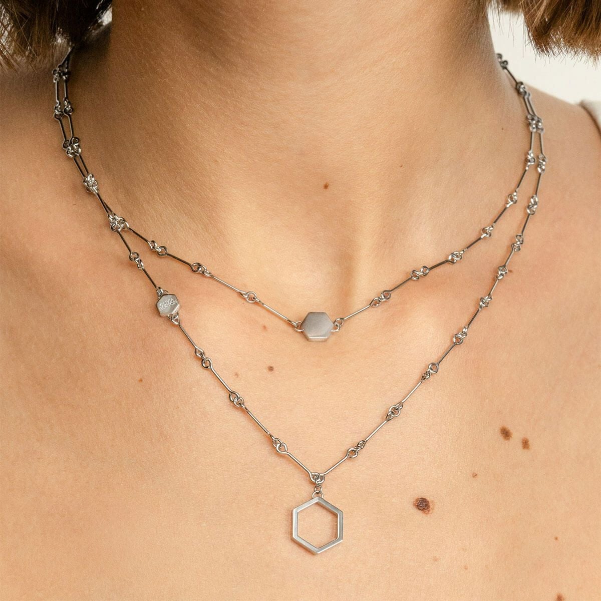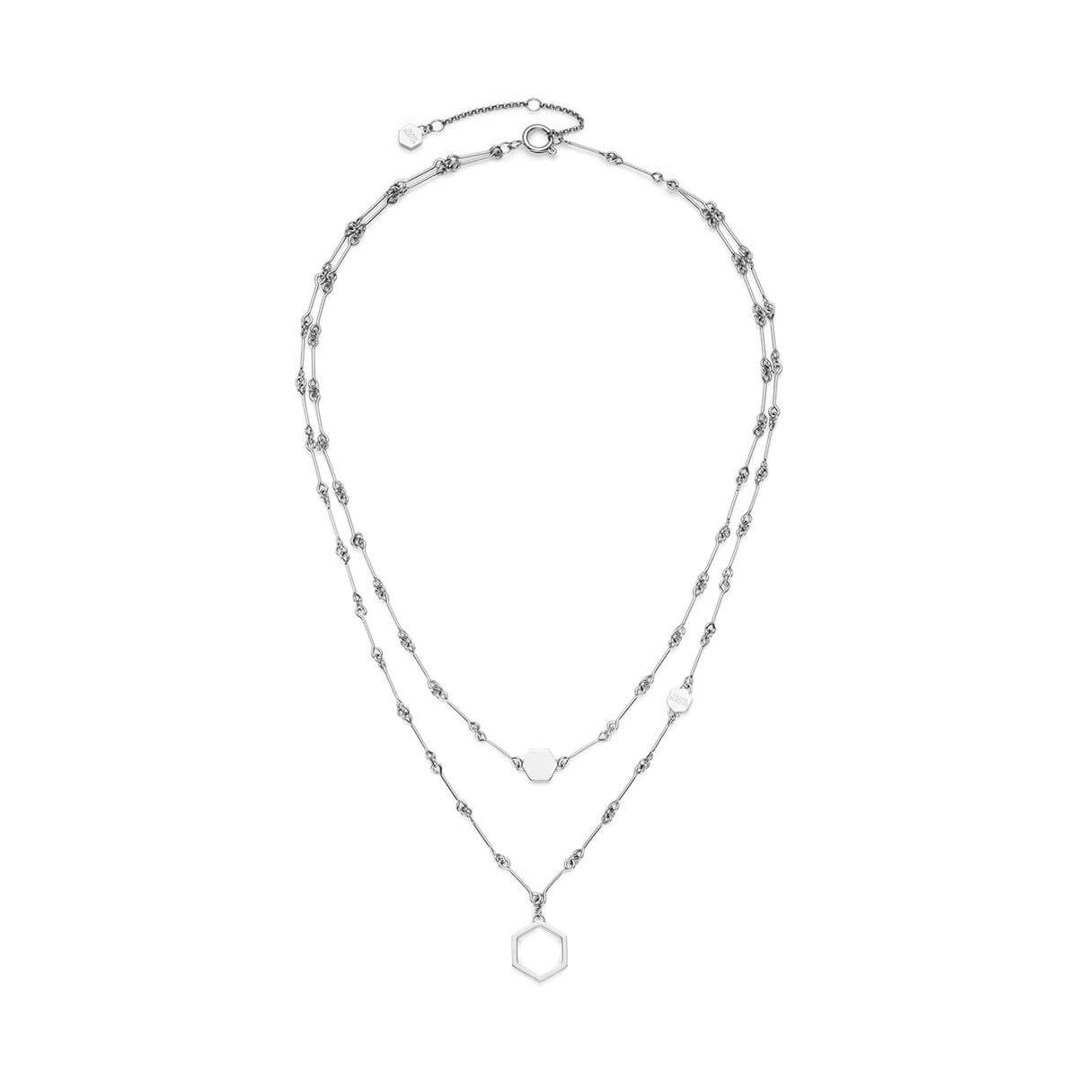 シグネチャー - ハニカム クラシック ダブル チェーン シルバー ネックレス