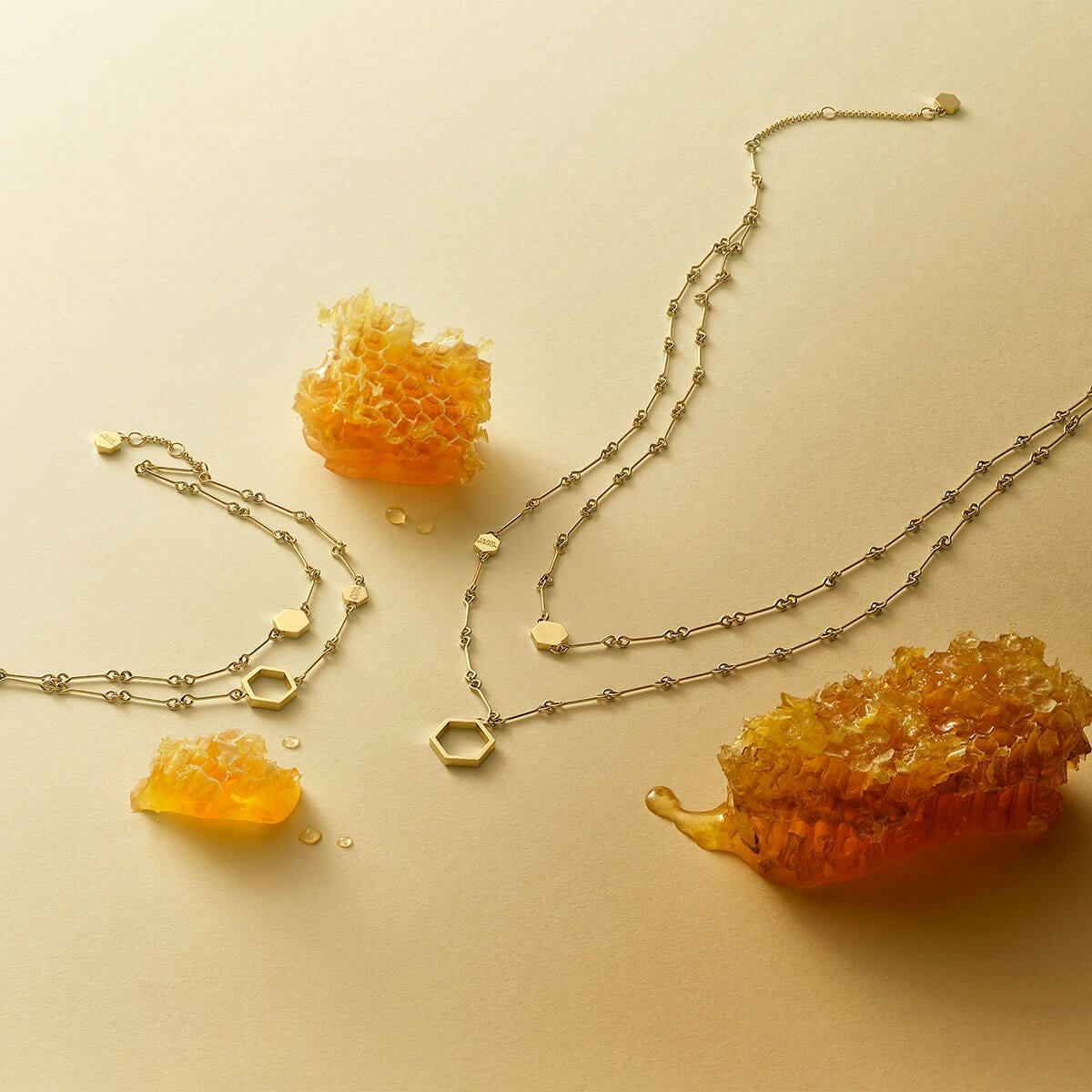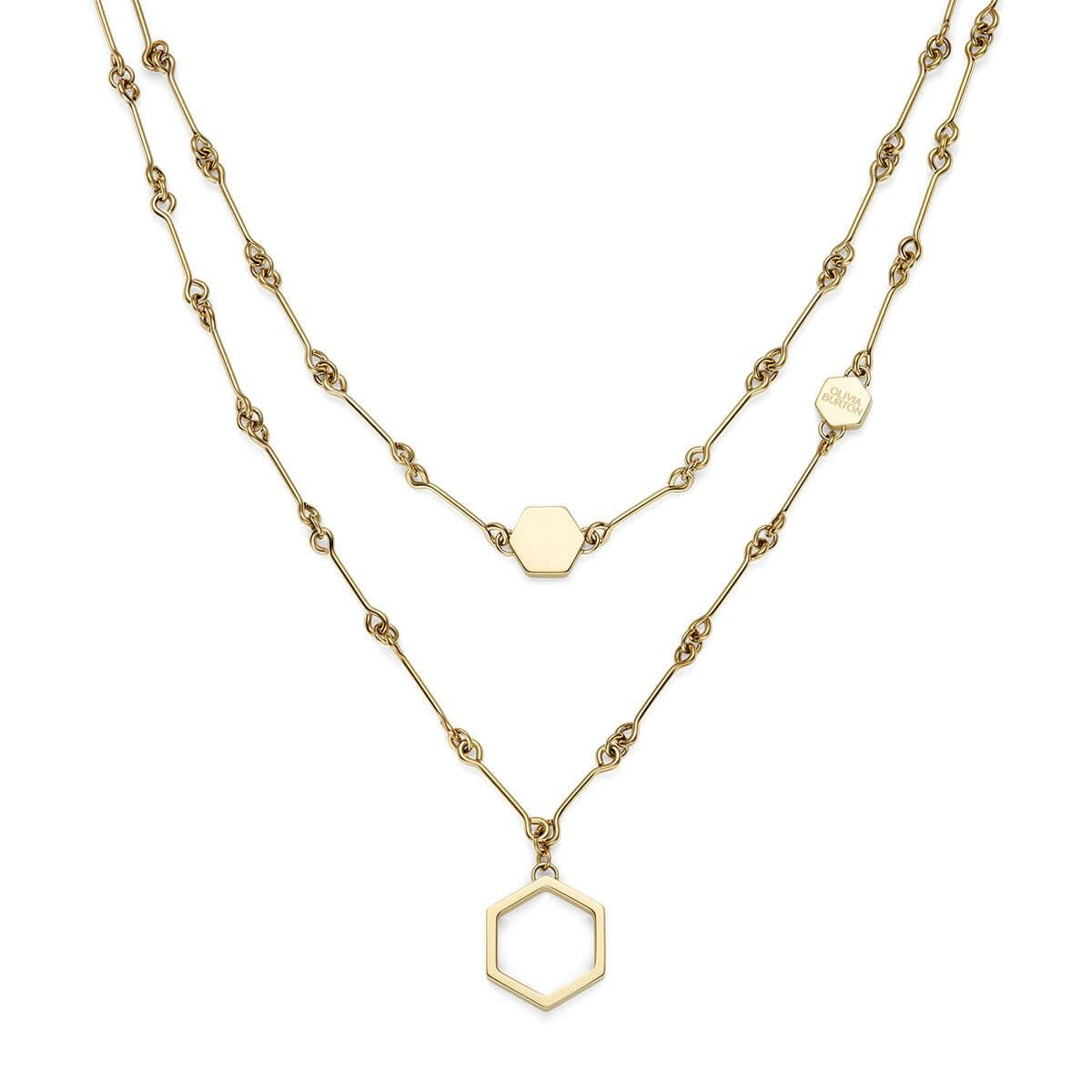 シグネチャー - ハニカム クラシック ダブル チェーン ゴールド ネックレス
