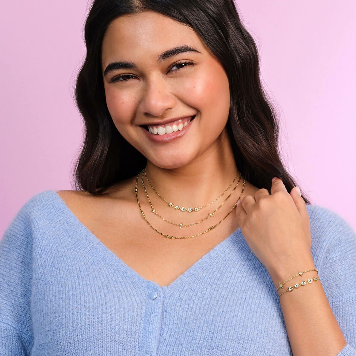トレンド - エバー スタックト クリスタル ゴールド ネックレス