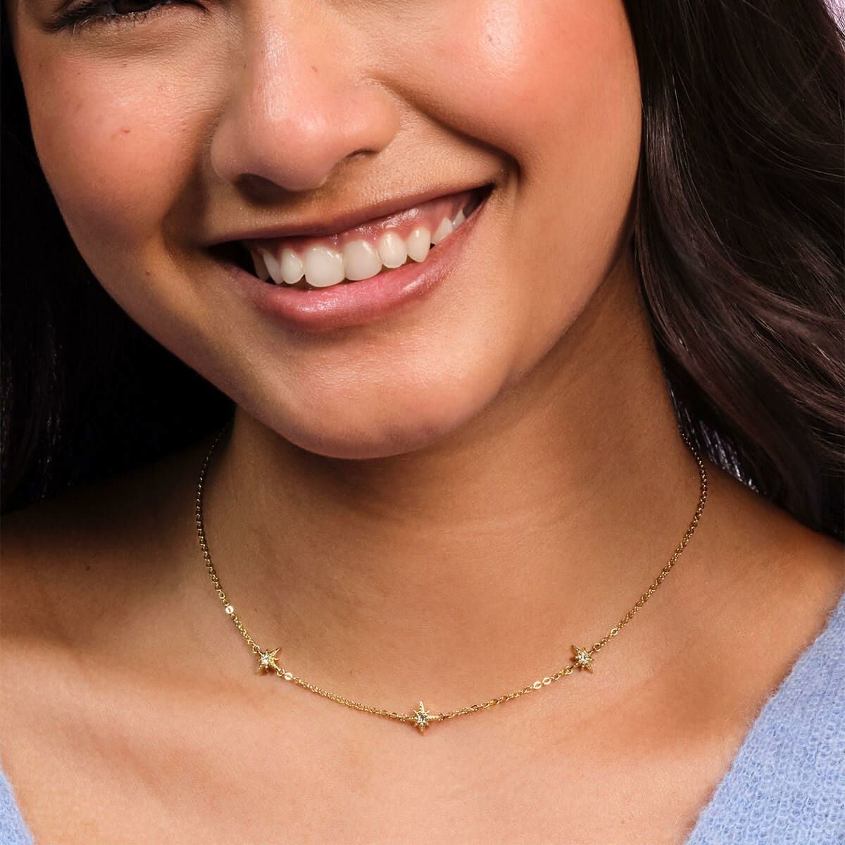 セレスティアル - ノース スター & ムーン ゴールド ネックレス