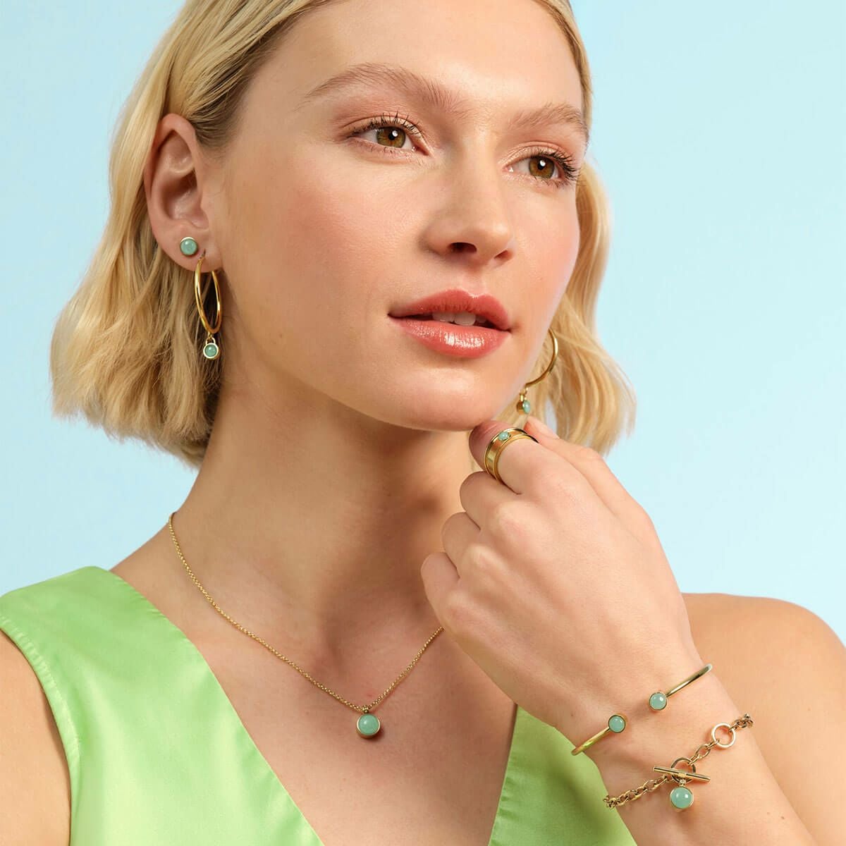トレンド - アベンチュリン カボション ゴールド ジェムストーン ネックレス