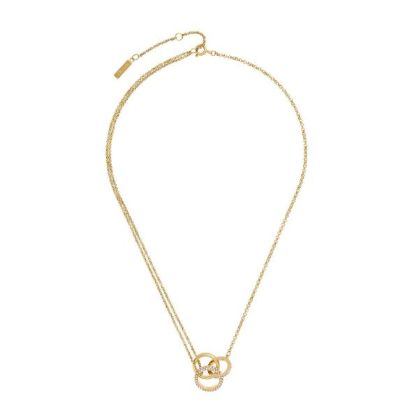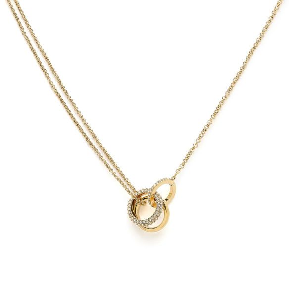 バランス、調和、静寂を象徴する、クラシック・エントワインシリーズのインターリンキング・ネックレスです。オリビア・バートンのシグネチャーをあしらったゴールドプレートのリングと、クリスタルをあしらった2つのサークルが絡み合い、エレガントなデザインでバランス感覚を表現しています。