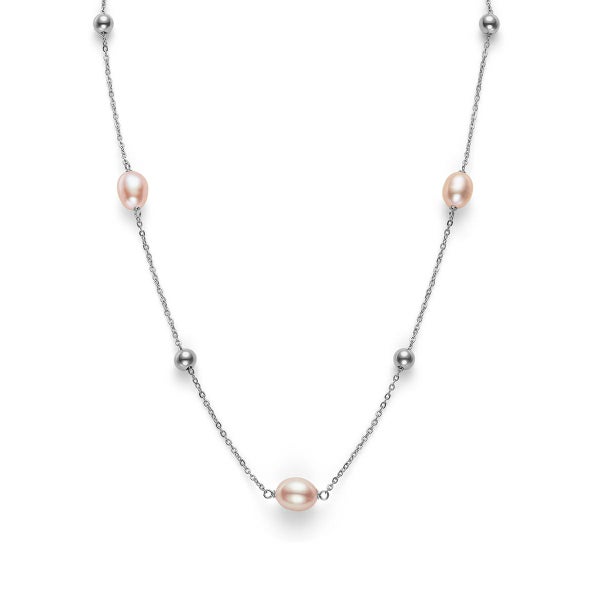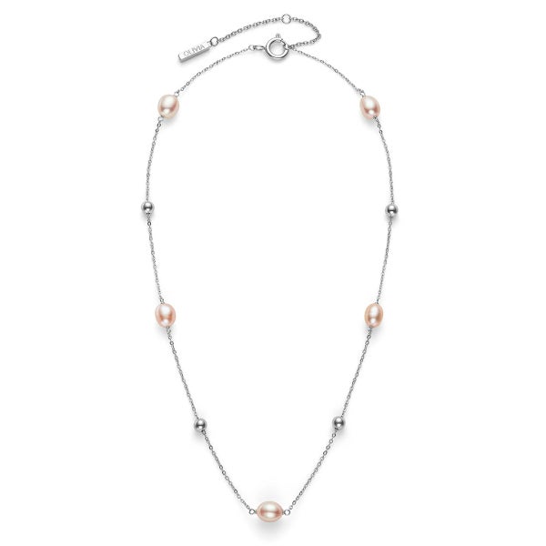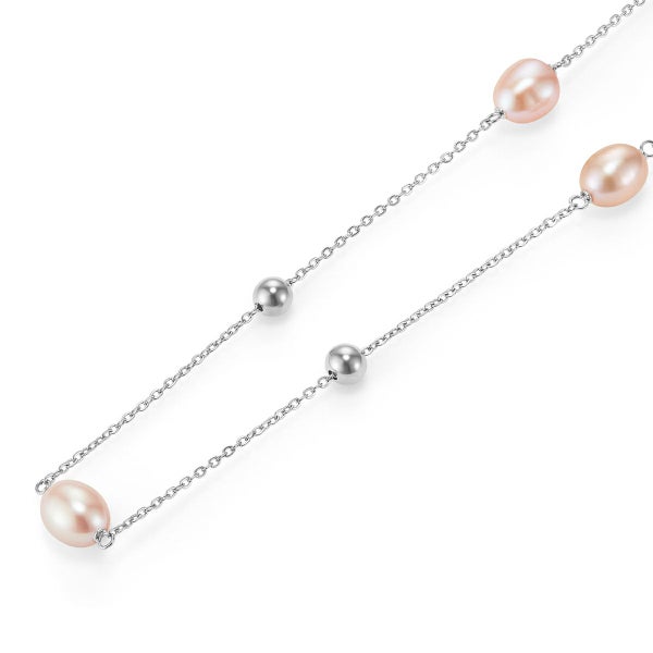 水中の美しさを捉えるために、見事な淡水真珠をご堪能ください。このステーションネックレスには、それぞれが美しくユニークな5つのローズトーンの真珠が特徴です。滑らかなシルバートーンのビーズと交互に配置され、繊細なシルバートーンのチェーンで仕上げられたこのネックレスは、独特の自然なひねりを加えたエレガンスを演出します。