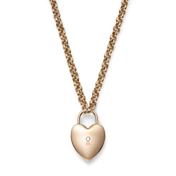 アンティークのヴィクトリアンジュエリーにインスパイアされた、遊び心あふれるディテールを加えたローズゴールドプレートのペンダントネックレスが登場。存在感のあるシルエットとボリューム感のあるチェーンが特徴で、中央にクリスタルが輝くエングレーブされた鍵穴が仕上げのアクセントです。