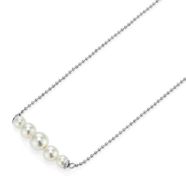 シルバートーンのチェーンに、グラデーションが美しいフェイクパールとメタルビーズを組み合わせた、洗練されたネックレス。パールの上品さはそのままに、さりげないメタルビーズがアクセントになり、ひと味違う表情をプラスします。ほかのネックレスとの重ね付けもおすすめで、夏の装いをぐっと華やかに演出してくれる一本です。