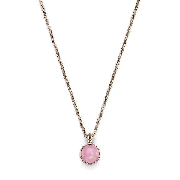 愛と癒しの石として知られるローズクォーツを、丁寧に磨き上げたカボションカットで仕立てたペンダントネックレス。