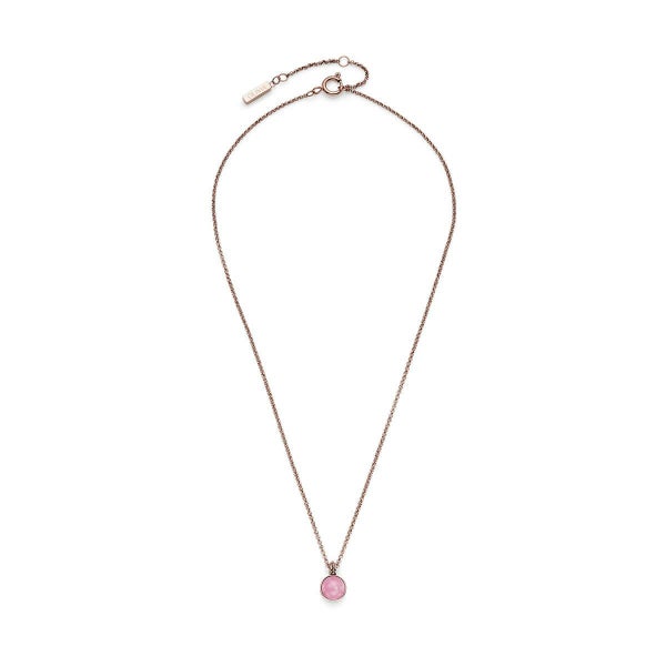 繊細なローズゴールドプレーテッドチェーンと組み合わせ、やわらかく上品な印象に仕上げました。