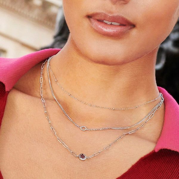 シルバートーンのチェーンが3本セットになっており、重ね付けや付け替え、単品付けなど、多彩なスタイリングをシンプルに演出します。