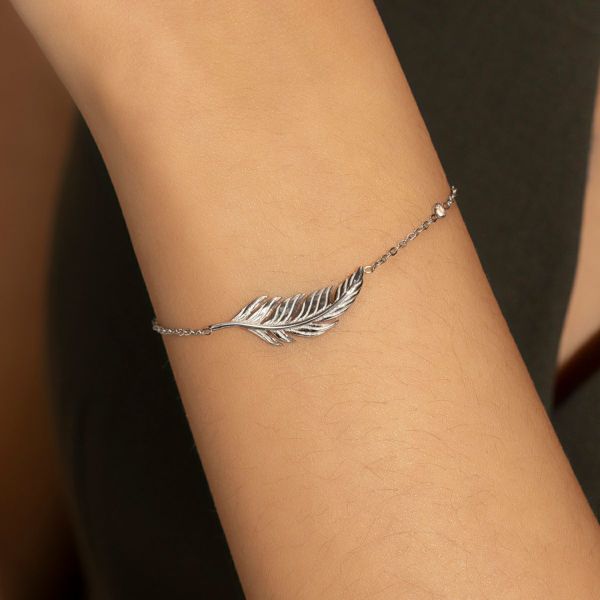 自由、知恵、力を象徴するフェザージュエリーは、優雅で女性らしく、動きに満ちています。この繊細なシルバートーンのフェザーブレスレットは、詳細な彫刻で生き生きとした表現が施され、チェーンには、思いがけない驚きとなる小さなクリスタルが取り付けられています。あなた自身や大切な人への、特別で心に残る贈り物になるでしょう。