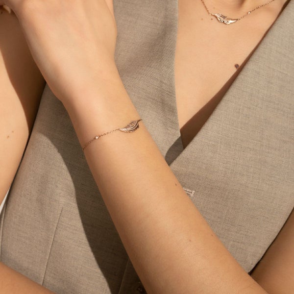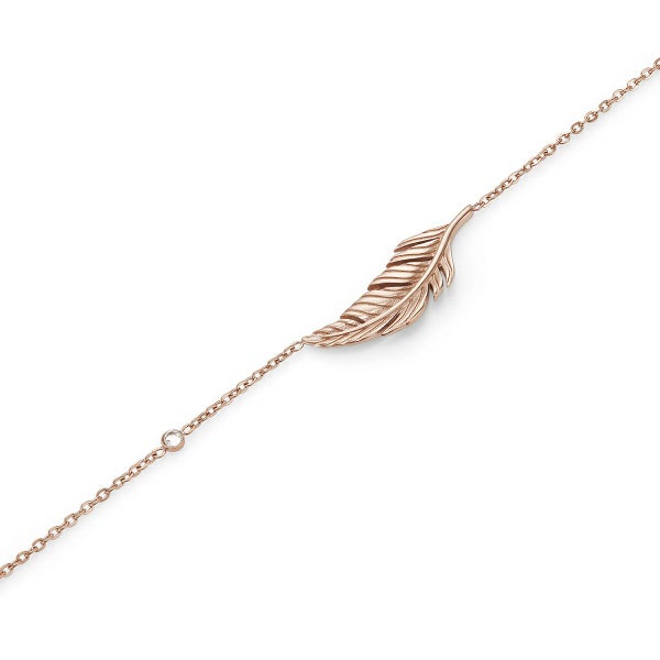 自由、知恵、力を象徴するフェザージュエリーは、優雅で女性らしく、動きに満ちています。この繊細なローズゴールドコーティングのフェザーブレスレットは、詳細な彫刻で生き生きとした表現が施され、チェーンには、思いがけない驚きとなる小さなクリスタルが取り付けられています。あなた自身や大切な人への、特別で心に残る贈り物になるでしょう。