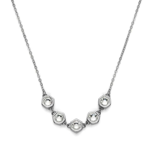 人気のモチーフから着想を得た「Ever Stacked」コレクションに、ハニカムを思わせる六角形のクリスタルチャームが並ぶシルバートーンネックレスが仲間入り。