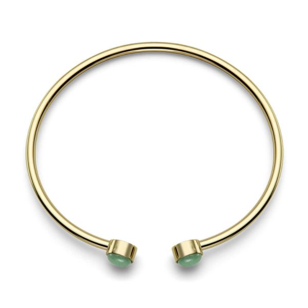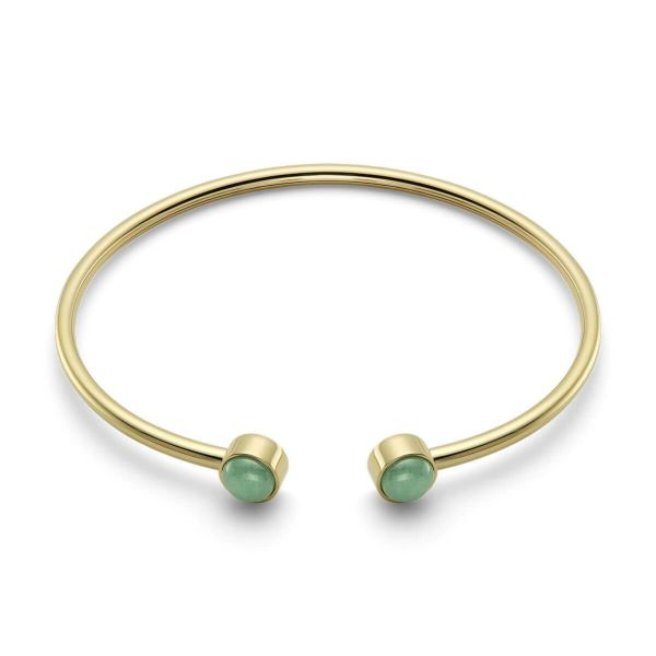 ゴールドプレーテッドのバングルの両端には、艶やかなカボションカットの天然石が2石セットされ、手元に洗練された彩りを添えます。