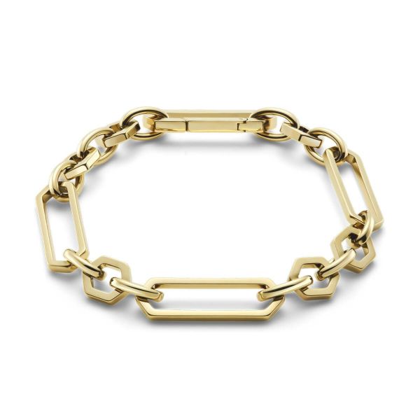 蜂の巣を思わせるリンクデザインが印象的な、ゴールドプレートのボリュームチェーンブレスレット。