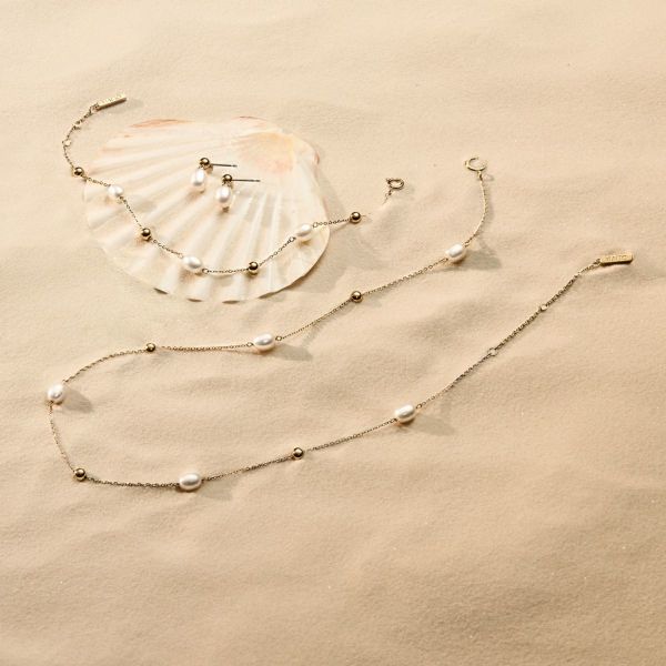 水中の美しさを捉えるために、見事な真珠をご堪能ください。これらのドロップピアスには、それぞれがユニークでオーガニックな形を持つ淡水真珠が使用されており、繊細なゴールドコーティングのビーズスタッドから吊り下げられています。一番の魅力?同じペアは二つとないという点です。