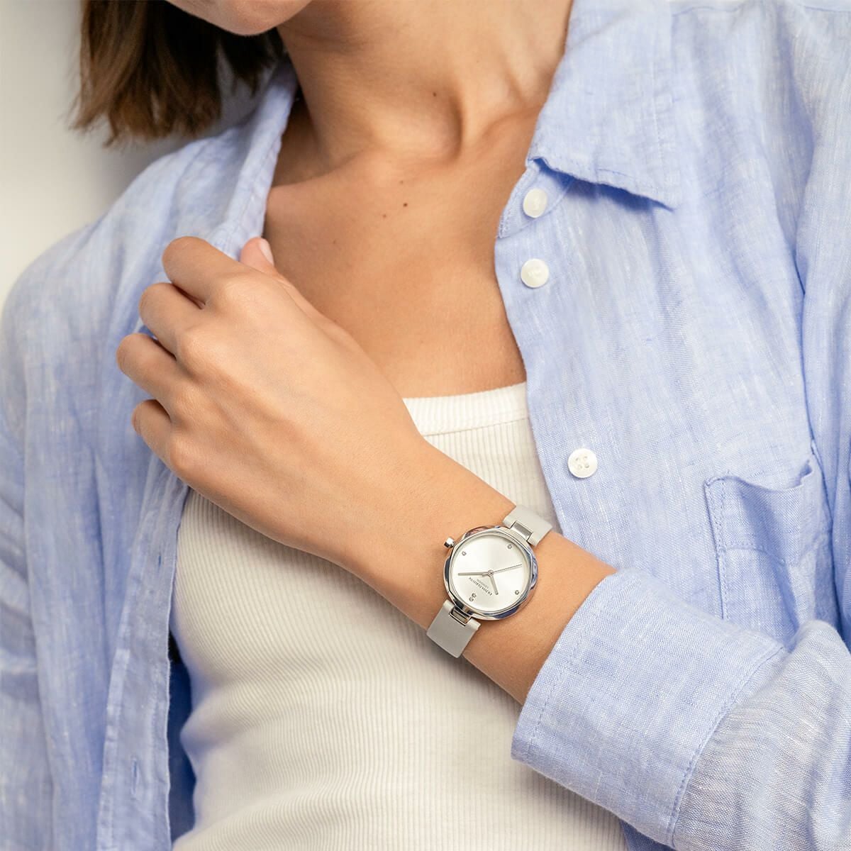 クラシック 32mm ディメンション シルバー ホワイト サンレイ アールグレイ レザー