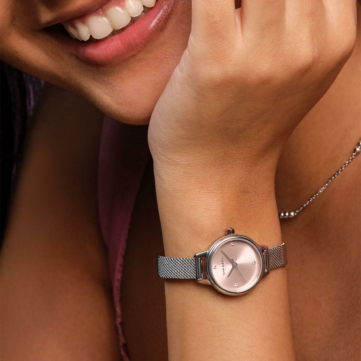 クラシック - 34mm グロウフル ピンククラッシュ&シルバー ブレスレット
