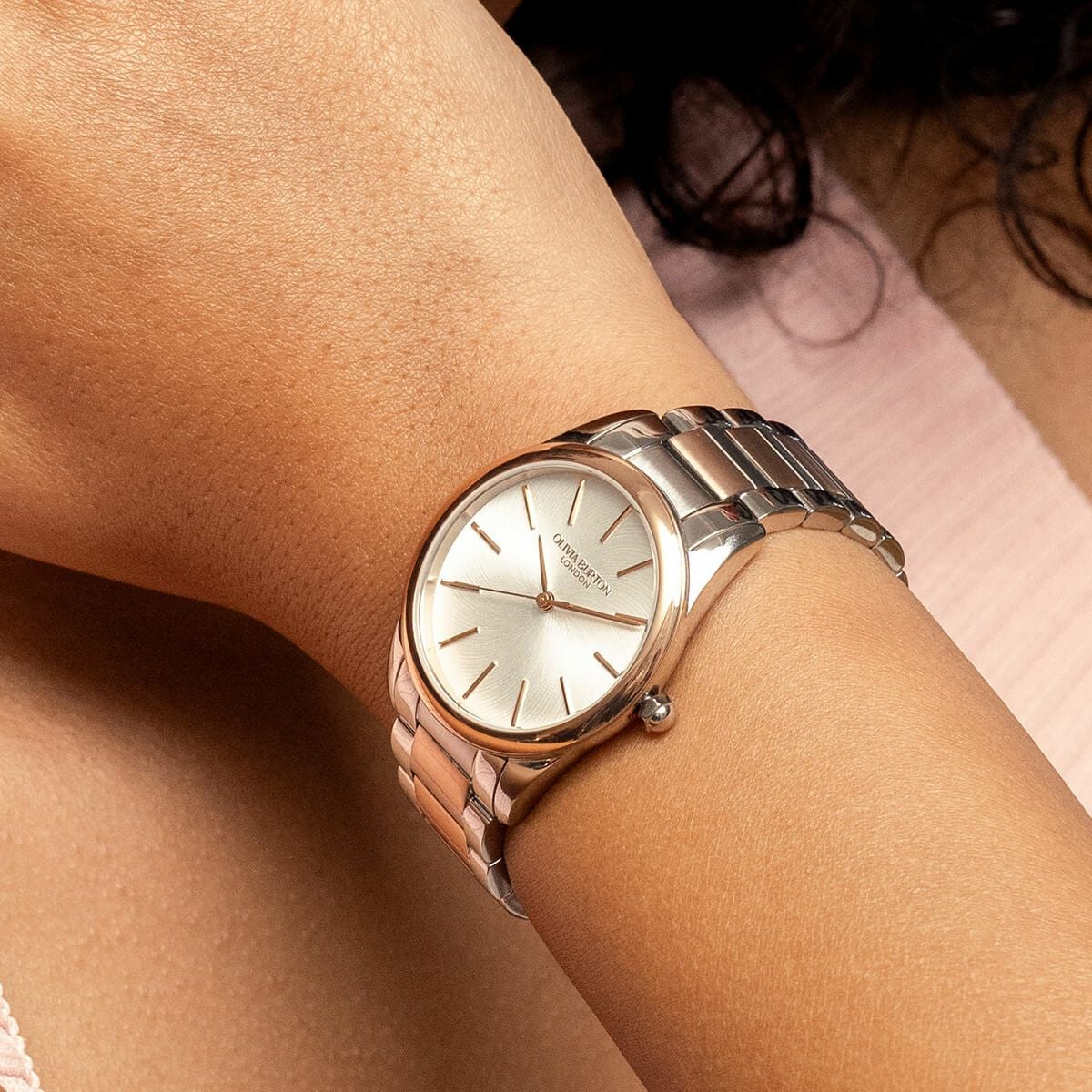 クラシック - 34mm グロウフル ホワイト&シルバー ローズゴールド ブレスレット