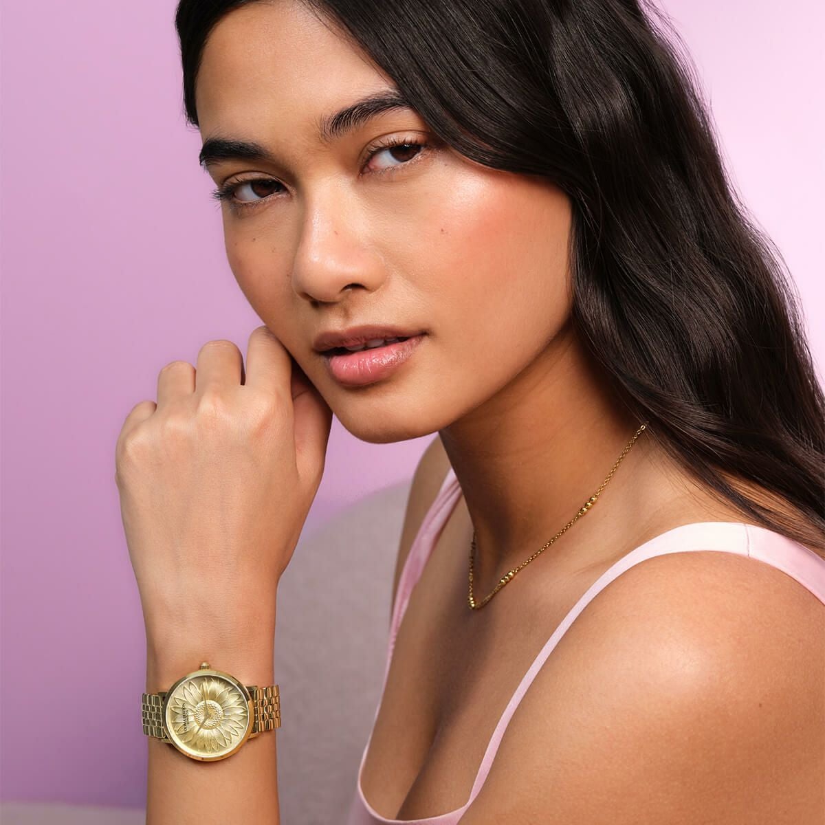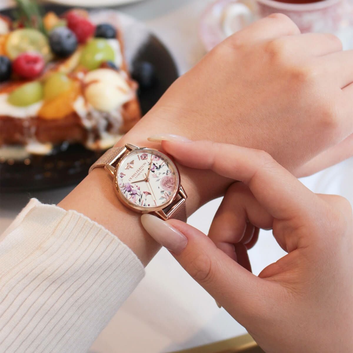シグネチャー 30mm イラストレイテッド フローラル ローズゴールド メッシュ ウォッチ