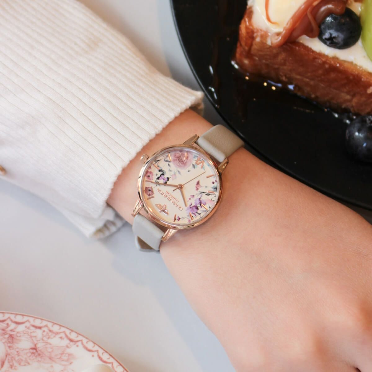 シグネチャー 28mm アブストラクト フローラル クリームレザー