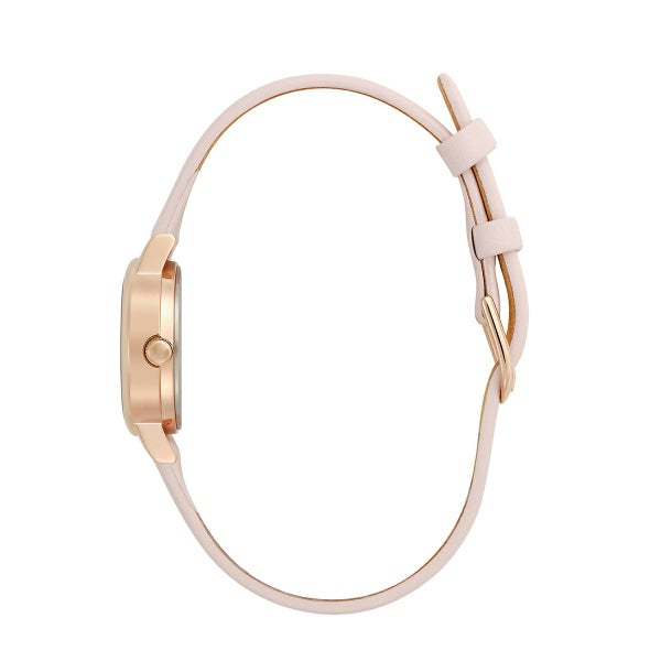 輝きを纏い、魅力的な文字盤を手に。シルバーホワイトグリッターの文字盤には、繊細なエッチングが施されたオリビア・バートンのアイコニックな蜂があしらわれています。ローズゴールド仕上げのクラシックなラウンドケースと上品なブラッシュレザーストラップが組み合わさり、どんな場面でも華やかな輝きを演出します。
