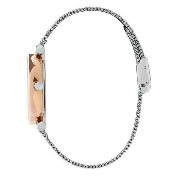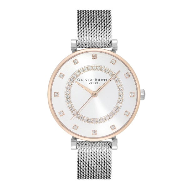ロンドンのシックな街、ベルグラビアにインスパイアされたモデルです。ローズゴールドのアクセントが効いたサンレイダイヤルに、クリスタルをあしらったインデックスとマーカーを配したクールで洗練されたデザイン。ローズゴールドトーンのケースにシルバーのメッシュストラップがセットされ、ラグジュアリーな雰囲気を醸し出しています。