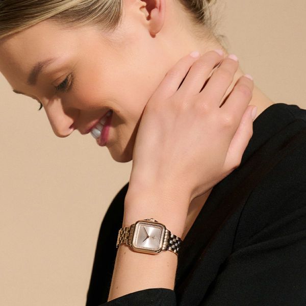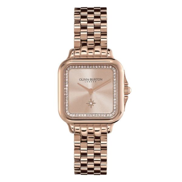 ロンドンの街並みや建築にインスパイアされたグロブナー・ウォッチ。柔らかい角やシマー加工のブラッシュピンクの文字盤には、クリスタルと北極星が輝き、カーネーションゴールドのリンクブレスレットストラップと光沢あるベゼルが贅沢感を引き立てます。新しいクラシックの美しさがここに。