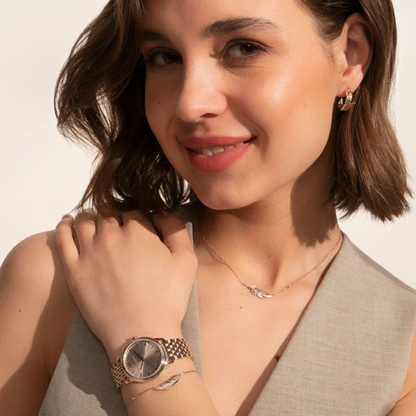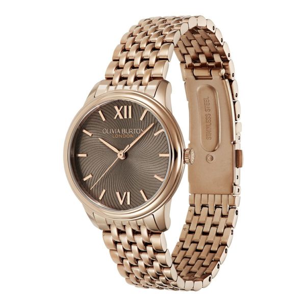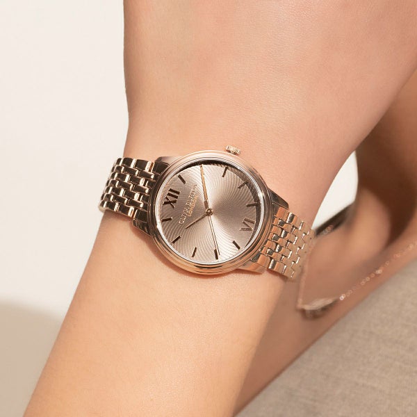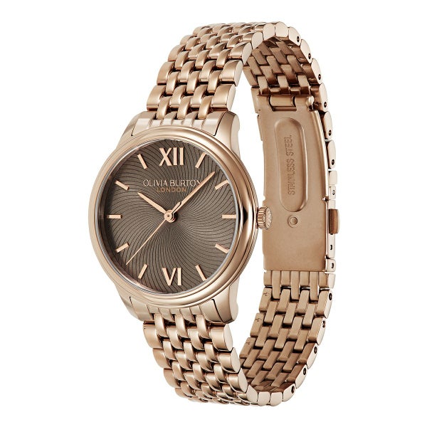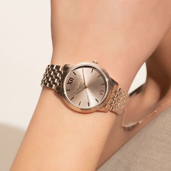 リューズにはイギリスの伝統的な花紋である「テューダー・ローズ」が刻印され、細部にまでこだわりを詰め込んだ日常のエレガンスを演出しています。