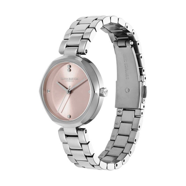 柔らかなメロウローズのサンレイダイヤルと、シルバートーンのブレスレットが織りなす上品な輝きが、あなたのスタイルを格上げします。
