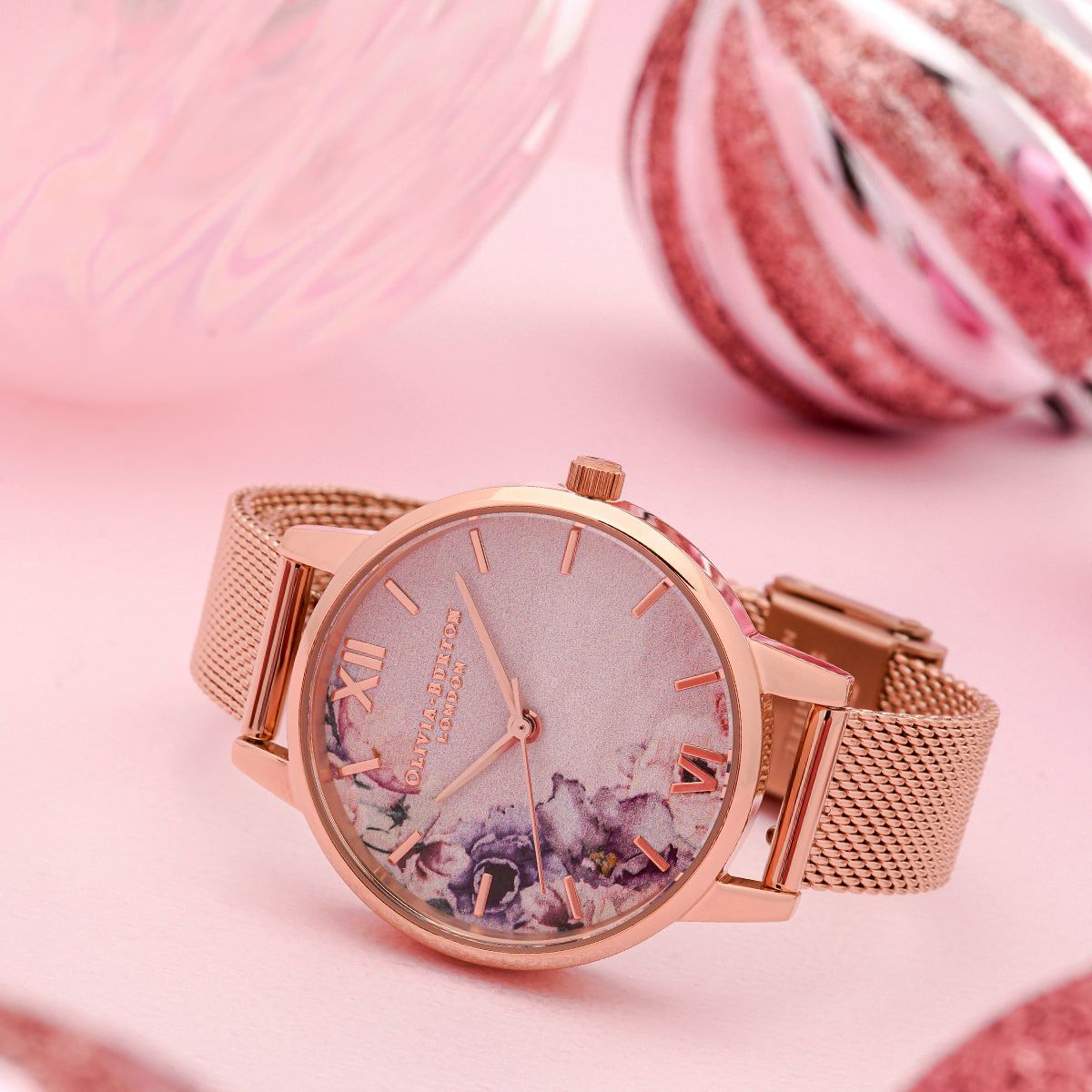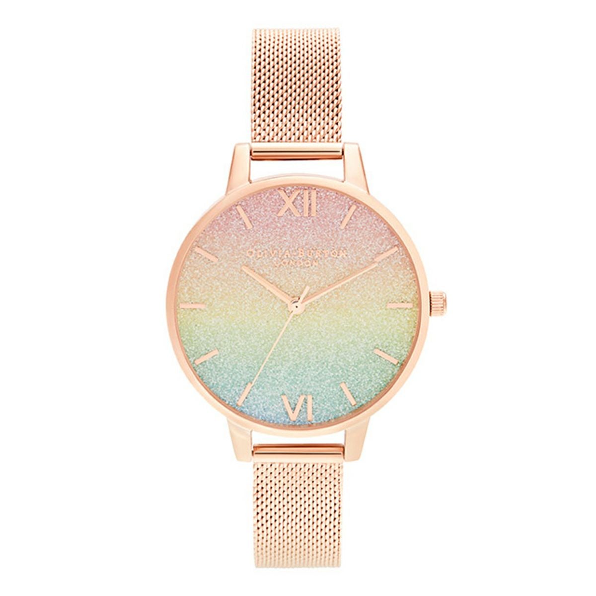 レインボー デミ レインボーグリッターダイヤル&ローズゴールドメッシュ