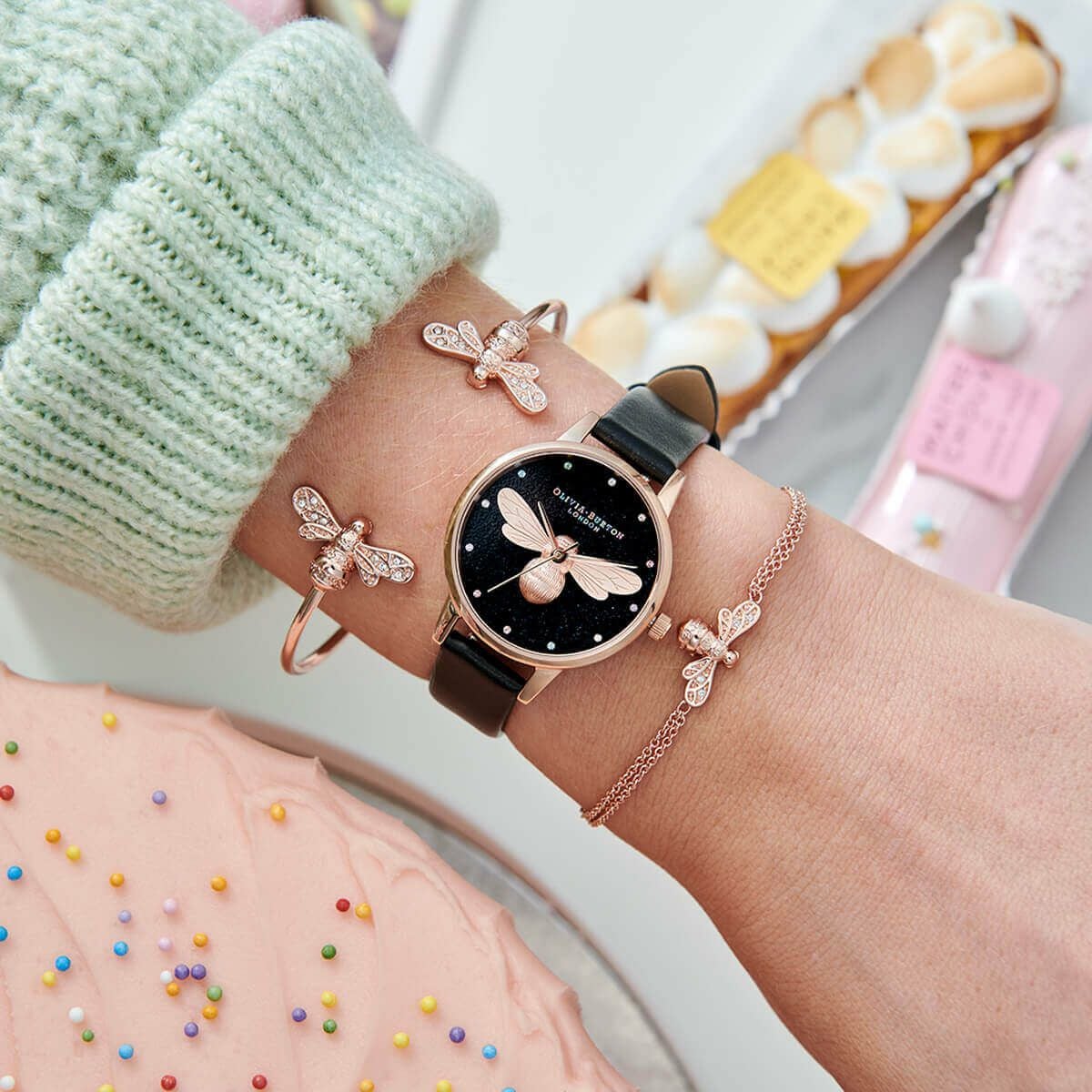 レインボー ラッキー ビー ヴィーガン ブラック & ローズゴールド