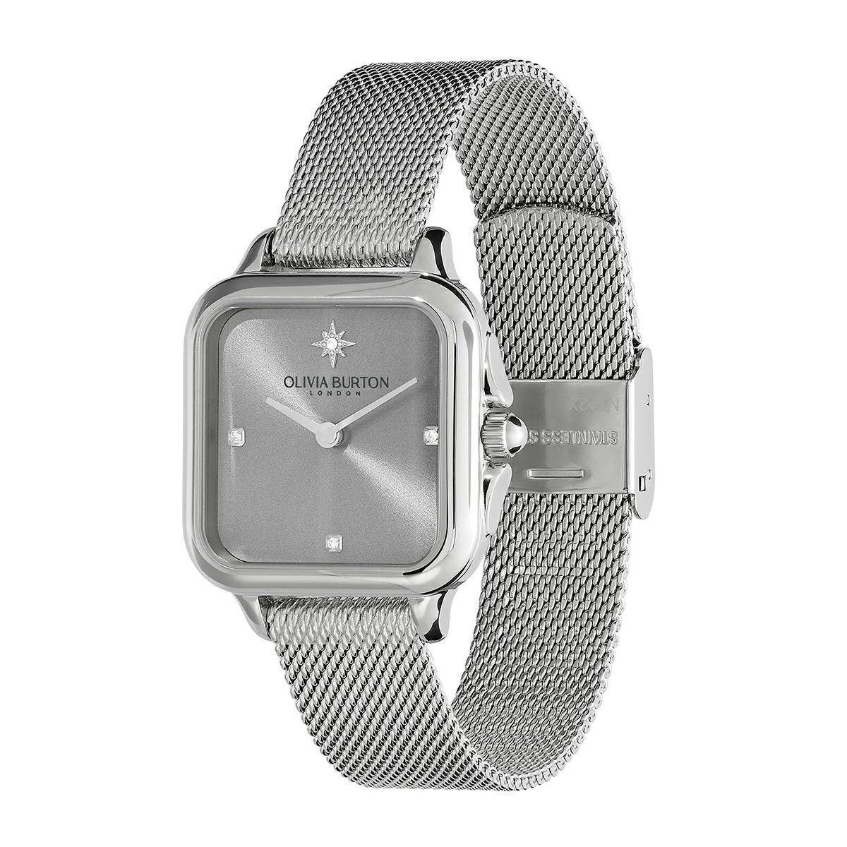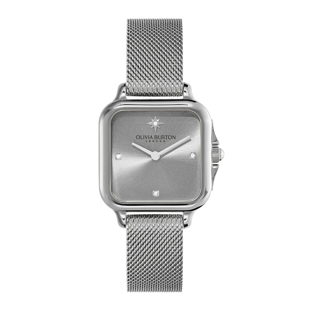 クラシック 28mm グロブナー ライトグレー & シルバー メッシュ ウォッチ