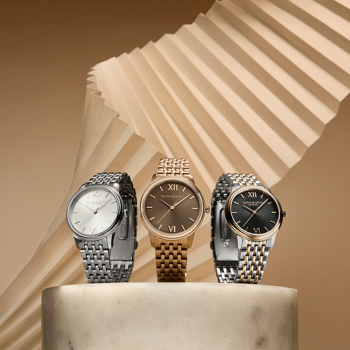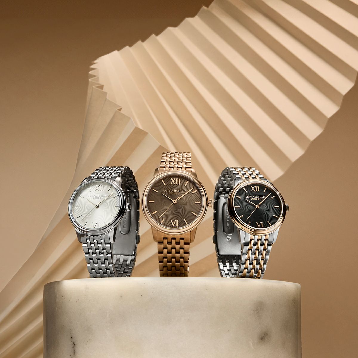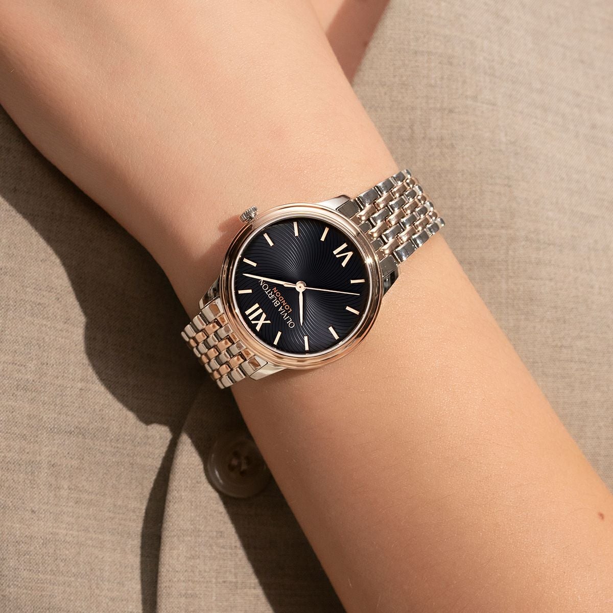 クラシック 32mm クラシック スワール ブラック サンレイ シルバー & ローズゴールド