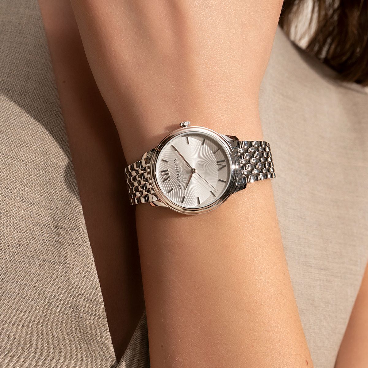 クラシック 28mm グロブナー クリスタル シルバー ホワイト サンレイ シルバー&ローズゴールド