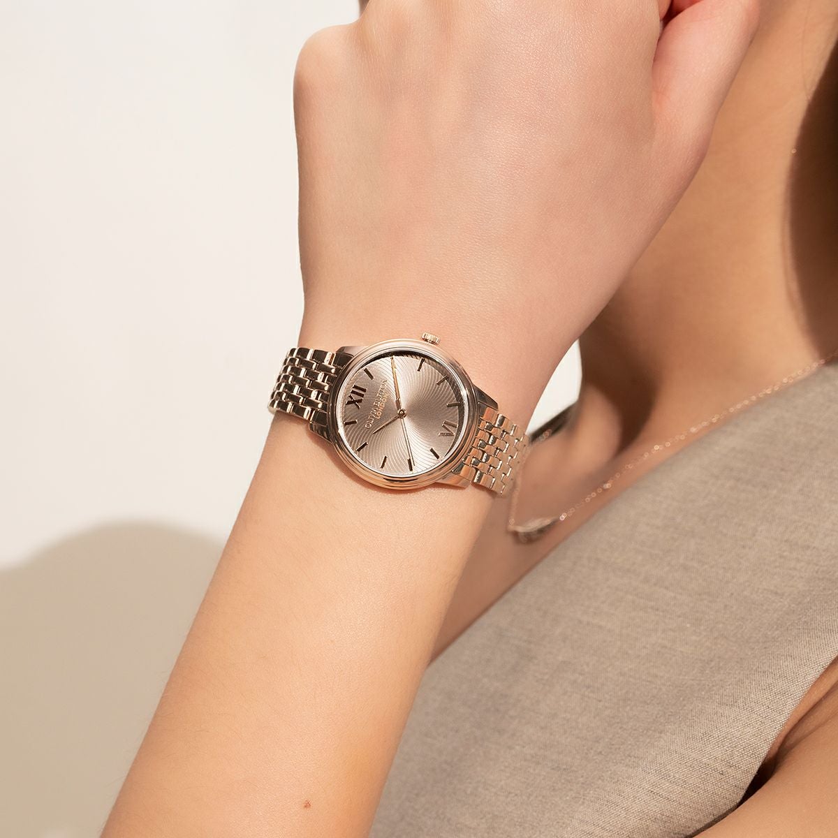 クラシック 28mm グロブナー ソフト ブラッシュ & カーネーション ゴールド ウォッチ