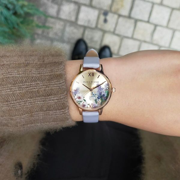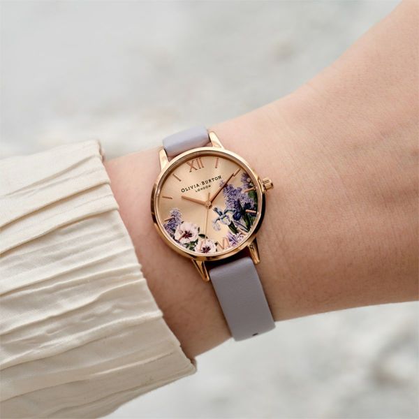 アネモネとライラックが咲き誇る秘密の花園に迷い込んでみませんか。「シークレットガーデン」コレクションの新作は、30mmの文字盤に手描きでデザインされた花々が可憐な姿で魅了します。パープルとホワイトの花のイラストに、ライラックの色合いのレザーストラップとローズゴールドのケースを合わせて、上品な腕時計が完成しました。おとぎ話のようにロマンチックな一本です。