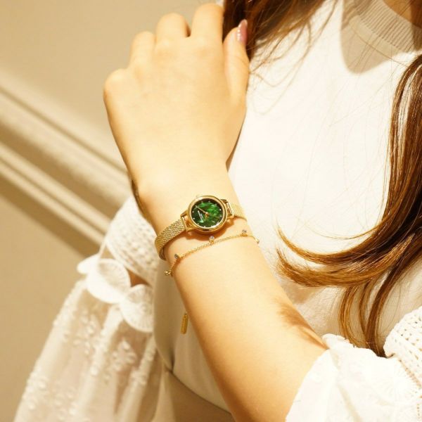 エフォートレスでエレガントなこの時計は、昔のハリウッドの魅惑的な雰囲気からインスピレーションを受けました。エメラルドグリーンの文字盤はマザーオブパールから作られており、無限の色の深みを生み出し、同じものは2つとないことを表し、高級感あふれるクリスタルマーカーとゴールドコーティングで仕上げられたこの時計は、究極のラグジュアリーモデルといえるでしょう。